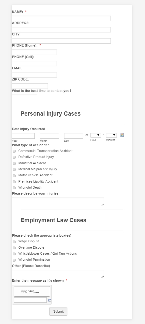 Please fill out the following Case Evaluation Form and the Claremont Law Offices of Herbert Hafif will call you on the phone or email you to schedule your complimentary in office consultation.